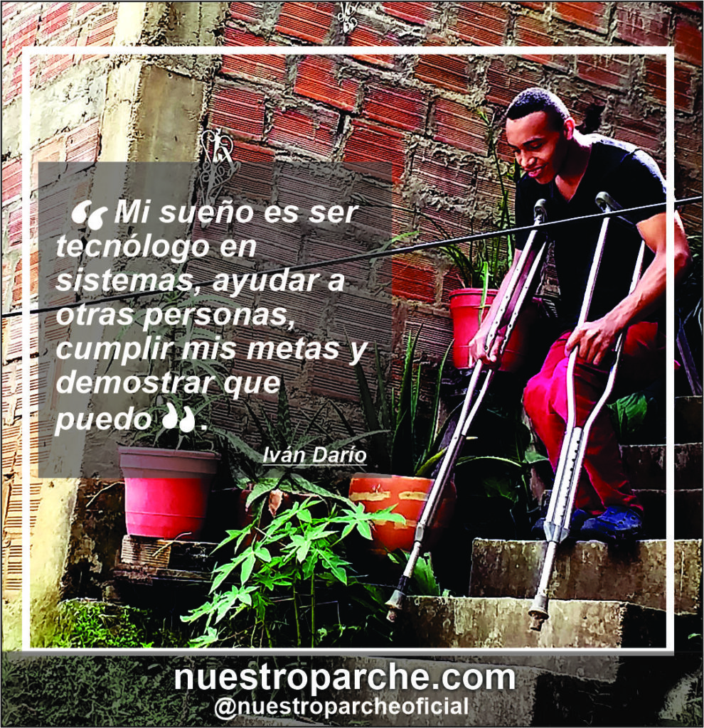 Buscar ayuda para poder caminar, tener un título profesional, extender su mano a los más necesitados y demostrar su entereza para lograr lo que se propone, es la meta que se ha fijado consolidar Iván Darío.