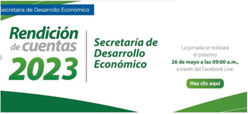El viernes 26 de mayo se llevará a cabo la Rendición de Cuentas 2023-I, donde se informará a la comunidad sobre la ejecución presupuestal hasta la fecha y los planes para el segundo semestre (julio-diciembre) en la Secretaría de Desarrollo Económico Distrital. Este evento se llevará a cabo de manera mixta, tanto presencial como virtual, en las instalaciones de la Alcaldía (calle 6N # 1-42, piso 3, Torre Centenario).