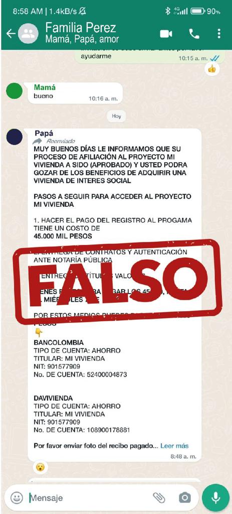 A través de plataformas de redes sociales y mensajes difundidos en WhatsApp, individuos sin escrúpulos están propagando información falsa acerca de supuestos pagos necesarios para acceder a beneficios de subsidios de vivienda.